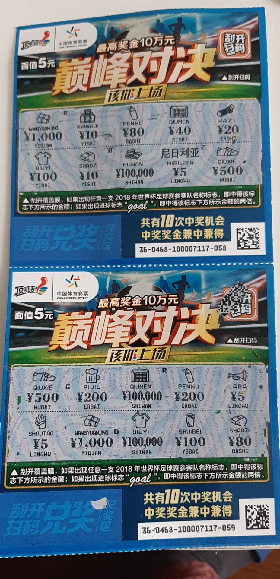 같은 숫자가 아래 위로 맞으면 당첨인지 알고 다음 날 보여줬더니 5위안 당첨된거 같다.. 라고 자신없는 대답..